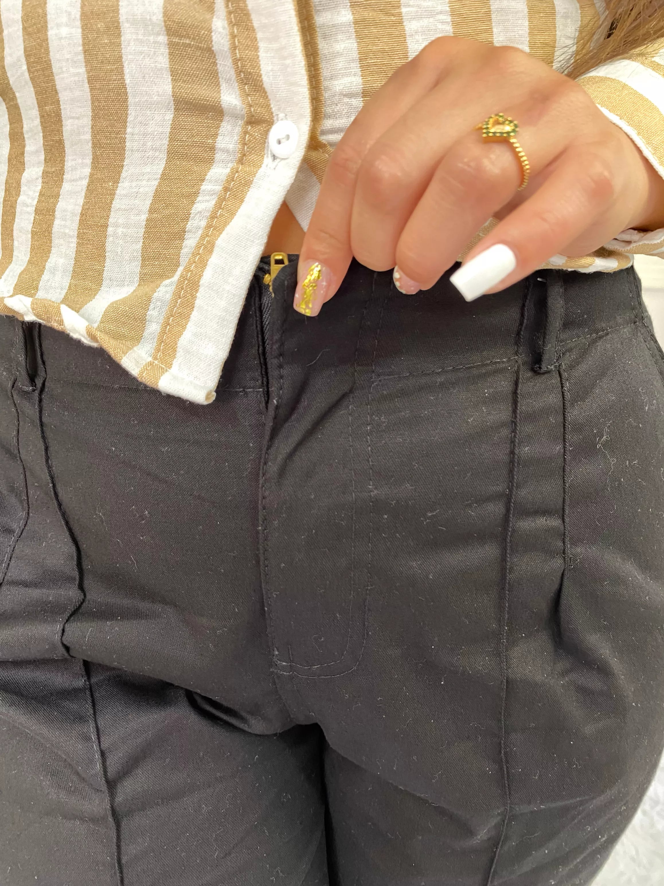 Pantalón confeccionado en tela drill de excelente calidad, con textura firme y cómoda que brinda estructura y elegancia. Su diseño moderno sin botón incluye un cierre que llega hasta la pretina, aportando un acabado limpio y sofisticado.
